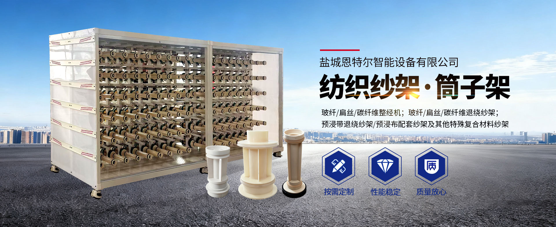 生产经验丰富 · 工艺流程成熟 · 产品规格齐全 · 售后服务完善盐城恩特尔智能设备有限公司位于美丽的黄海之滨,苏北沿海中部射阳县合德工业园区,是生产纺织机械、整经配套设备的产业化企业,是一家集整经机、整经机纱架、红外线断经自停、整经机张力器系列、整经配件、纺机配件等产品研发、生产、销售于一体的综合型企业。